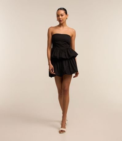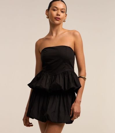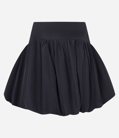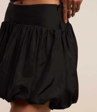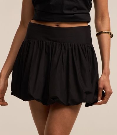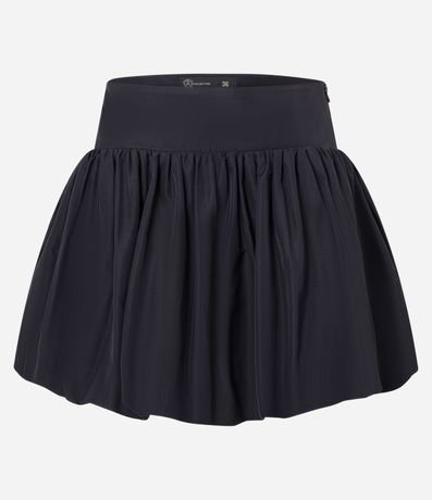 Saia curta balonê feminina, modelo alfaiatado, com zíper lateral e pregas.