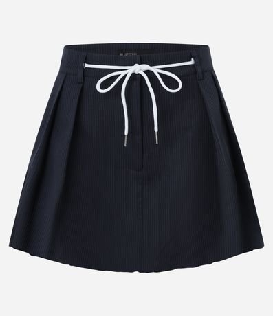 Ref: Saia mini, balonê com passantes no cós, amarração e estampa xadrez pied-de-poule.