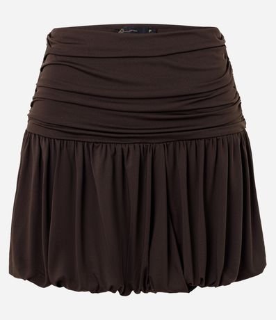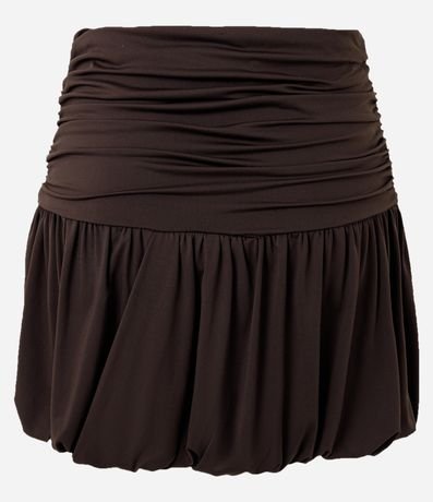 Ref: Saia feminina confeccionada em microfibra através de boas práticas ambientais, no modelo balonê. Possui cós franzido, sem estampa e detalhes drapeados.