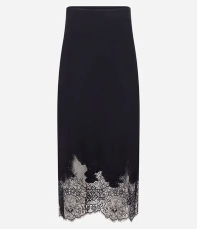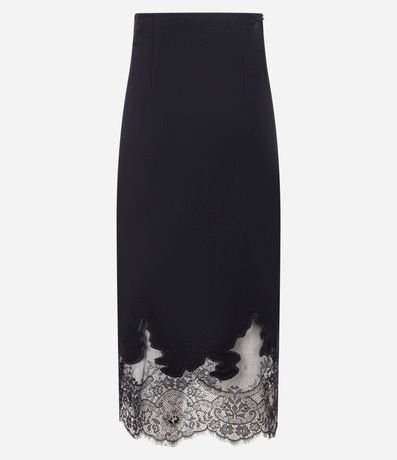 Saia Boho Reta em Crepe com Renda Floral na Barra