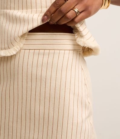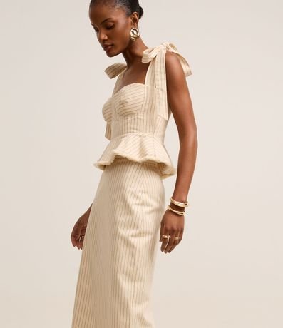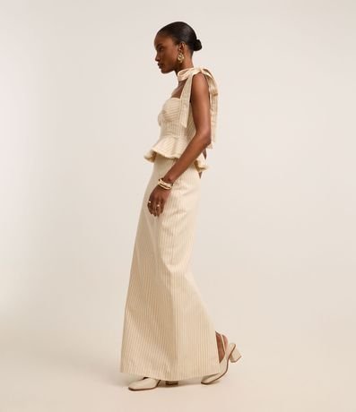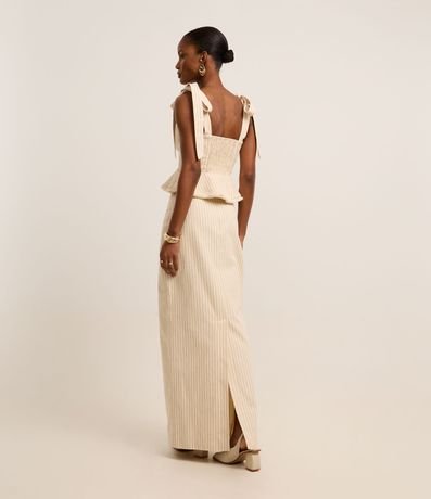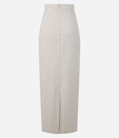 Ref: Saia longa, confeccionada em algodão, com fechamento por zíper invisível nas costas e fenda central detrás da barra. A roupa dispõe de listras verticais. Este produto possui tecido de pet e fio desfibrado em sua composição, além de ter sido produzido através de processos mais sustentáveis com boas práticas ambientais, sendo ambientalmente mais responsável.
