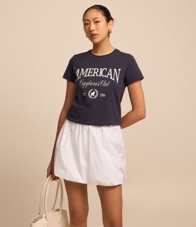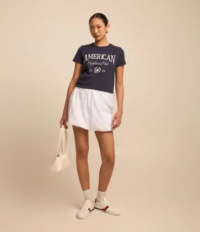 Saia feminina curta no modelo balonê confeccionada em tricoline mais sustentável, cós com elástico.
