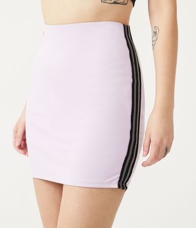 Ref: Saia curta em ponto roma com cintura alta. Conta ainda com listras contrastantes em suas laterais, que fazem parte do diferencial do produto.
