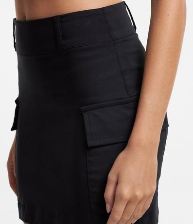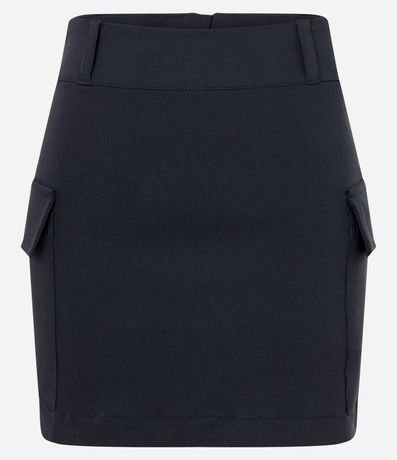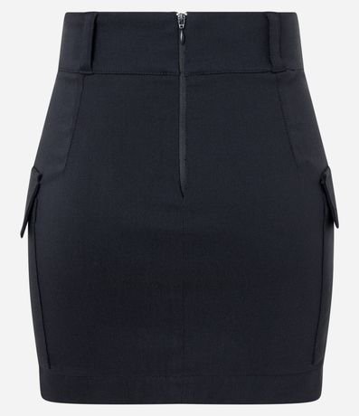 Ref: Saia curta, em bengaline com zíper nas costas e bolsos cargo nas laterais.