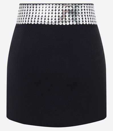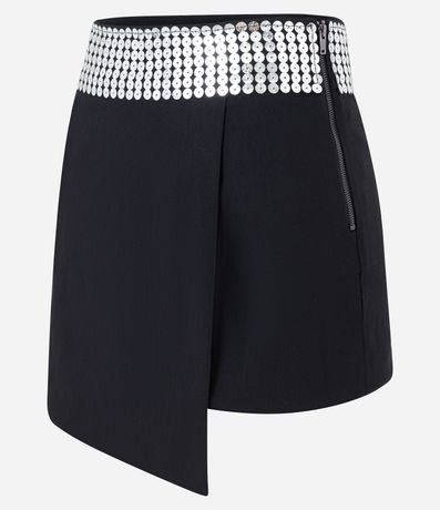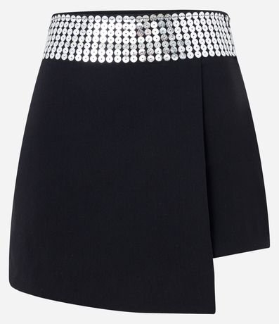 Saia Curta em Bengaline Transpassada com Detalhe de Paetê no Cós