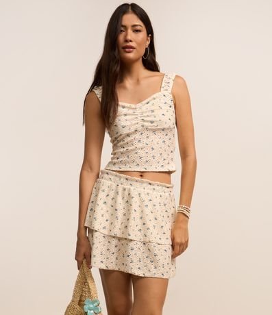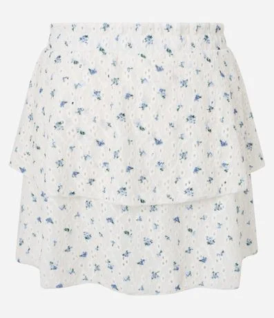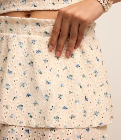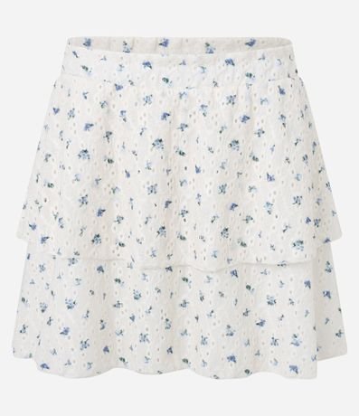 Ref: Saia curta, confeccionada em laise, com camadas e cós elástico. Possui textura de furinhos e estampa floral.