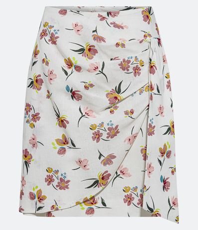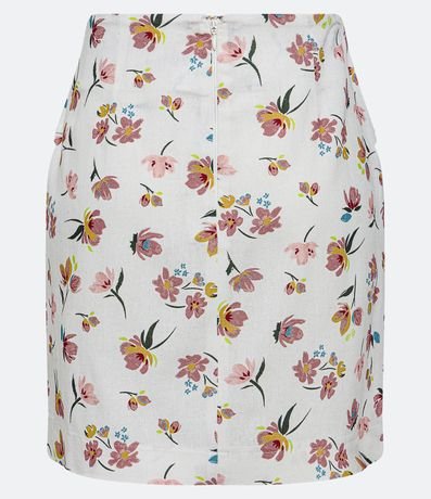 Ref: Saia acima dos joelhos em linho com faixa pendurada e flores estampadas.