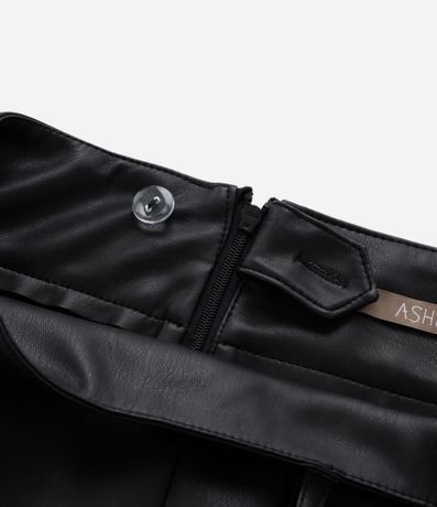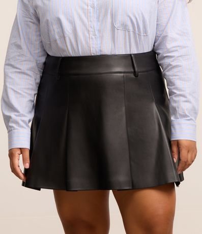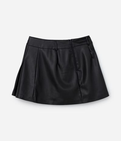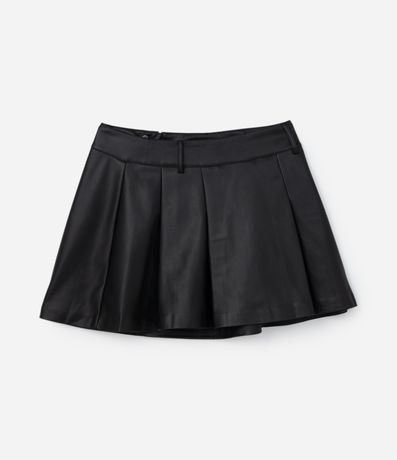 Ref: Saia curta de PU plissada e com fechamento por botão e zíper.