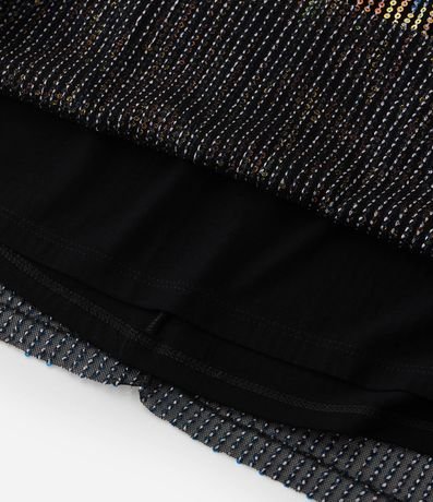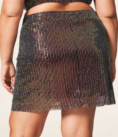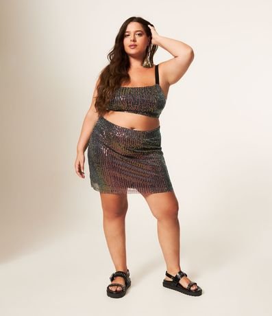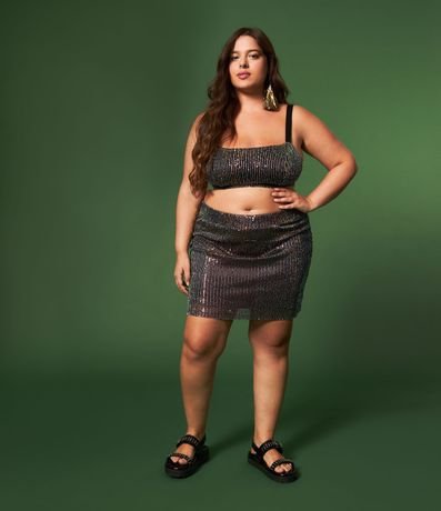 Ref: Saia curta plus size, confeccionada em paetê, com cintura elástica e forro.