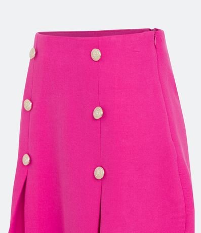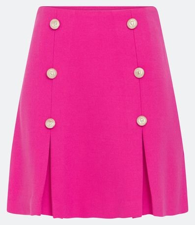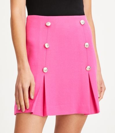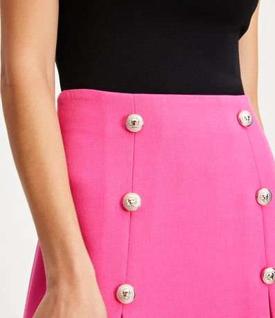 Ref: Saia acima dos joelhos em piquet com botões diferenciados. Conta com tecido texturizado e pregas na barra