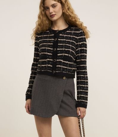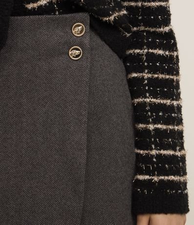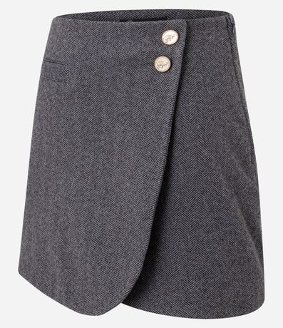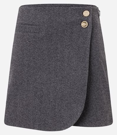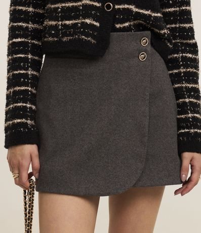 Saia curta em polivelour transpassada com bolsos e botões frontais.