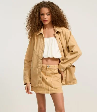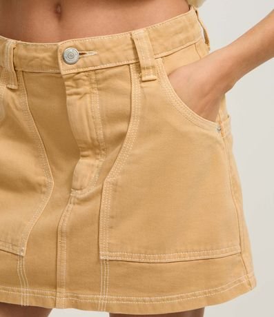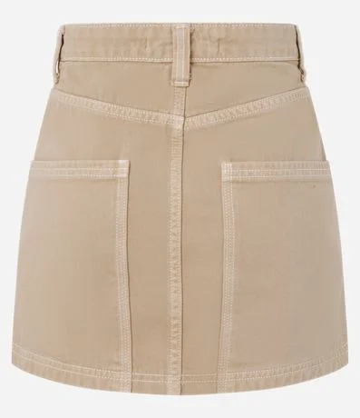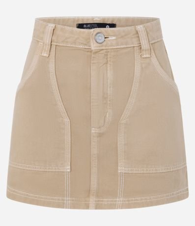 Ref: Saia curta, reta confeccionada em sarja com algodão agroecológico, pespontos contrastantes e bolsos grandes na parte da frente.