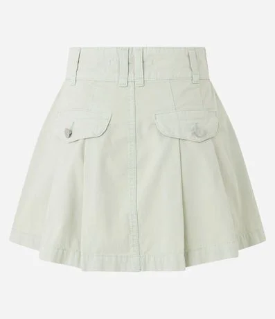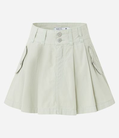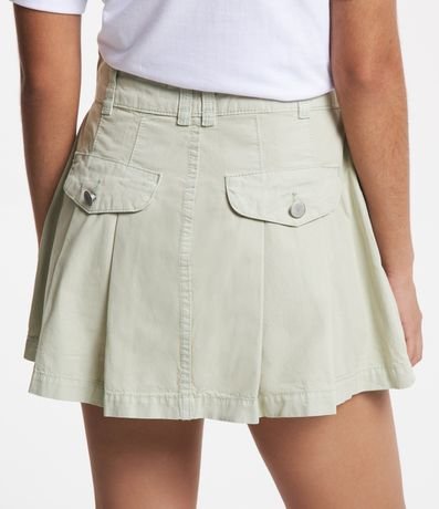 Ref: Saia curta em sarja com pregas e bolsos com lapela.