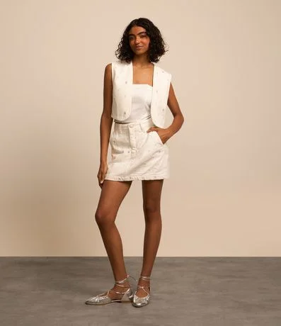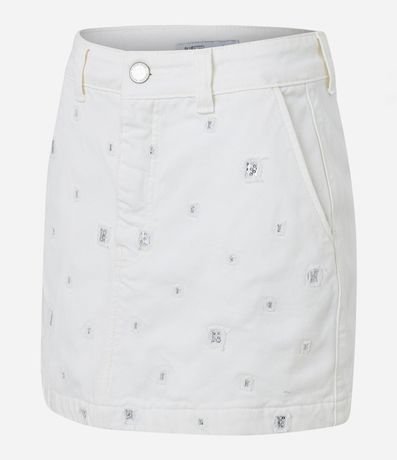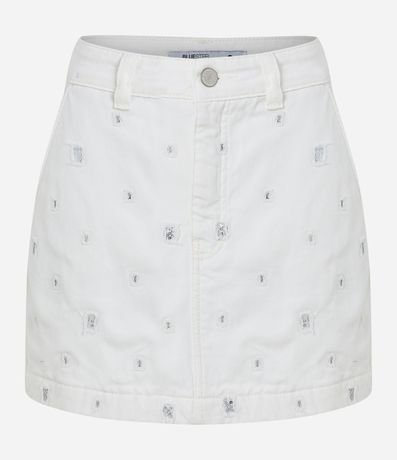 Saia Curta em Sarja com Puídos e Paetês Aplicados