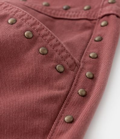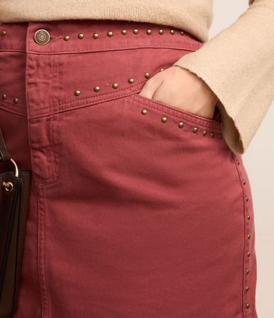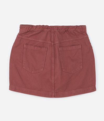 Ref: Saia curta em sarja de algodão certificado. A peça tem elástico nas costas, recortes no cós, tachinhas frontais e bolsos.