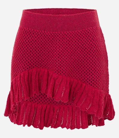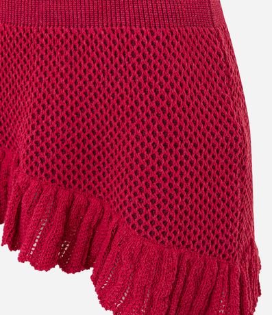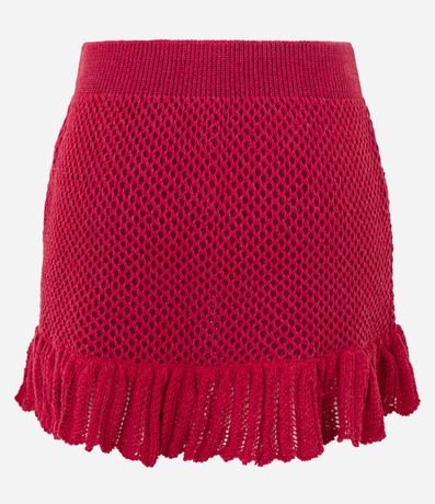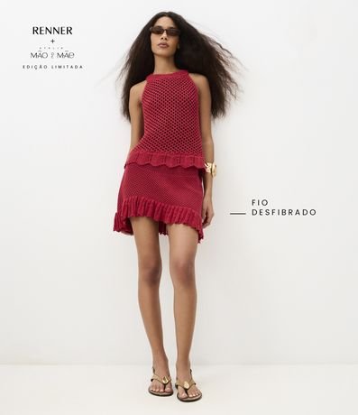 Ref: Saia curta, confeccionada em tricô, com elástico no cós, babados na barra e ponto vazado. Peça construída com efeito crochê. Este produto possui algodão certificado em sua composição, sendo ambientalmente mais responsável. Esta peça faz parte da collab Ateliê Mão de Mãe.