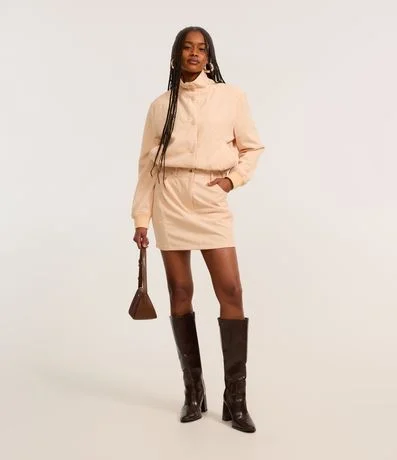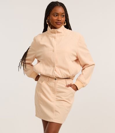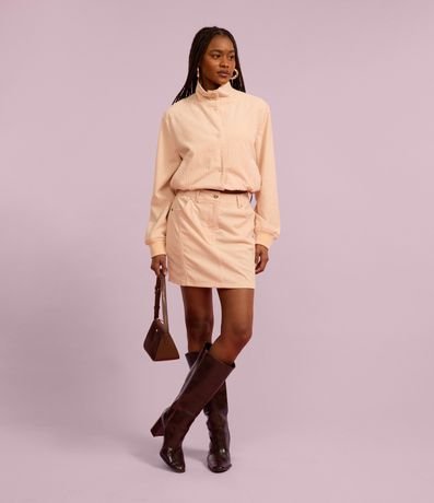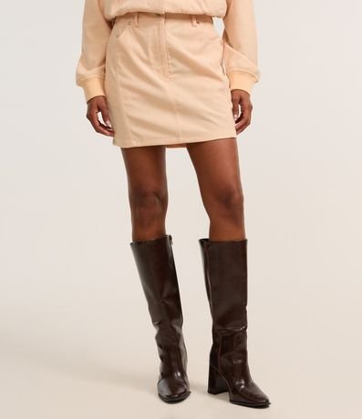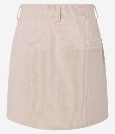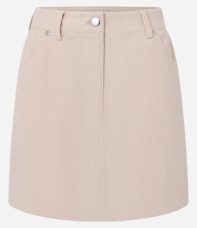 Saia curta confeccionada em veludo cotelê, cintura alta e bolsos embutidos na parte de trás.
