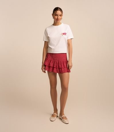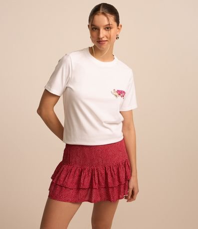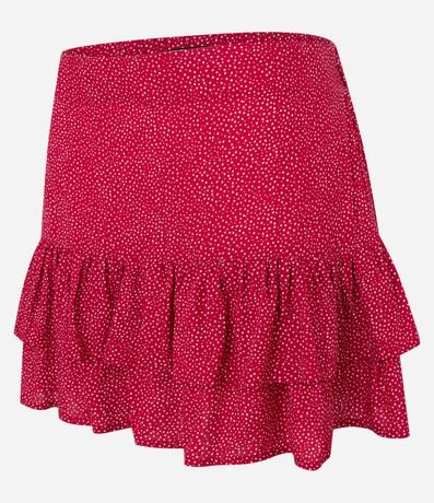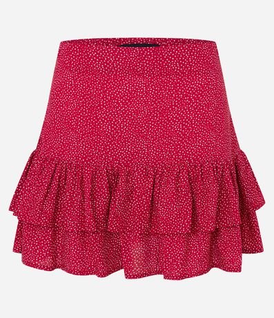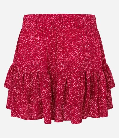 Ref: Saia curta com babado. elástico na parte de trás do cós, poá e babados na barra.