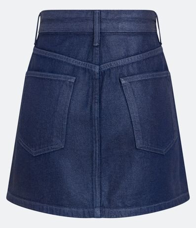 Saia Curta Jeans com Abotoamento Frontal e Textura Resinada