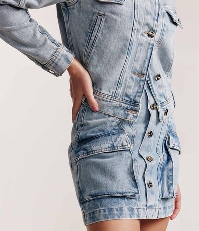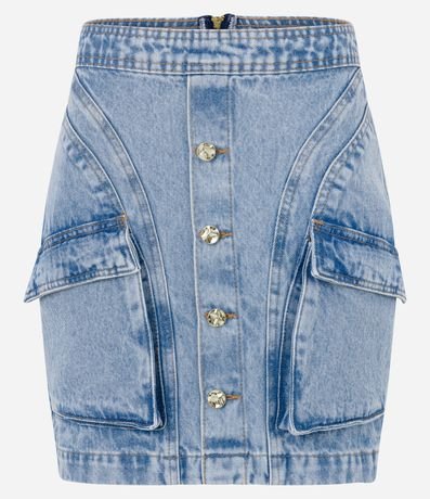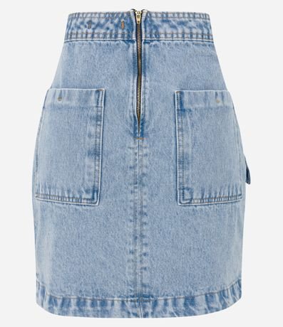 Saia Curta Jeans com Recortes e Bolsos
