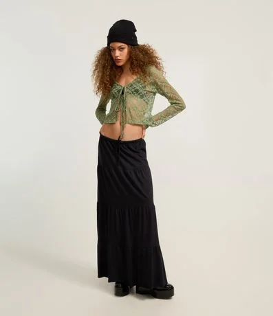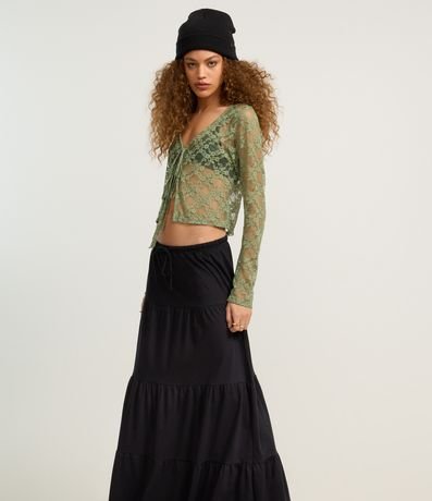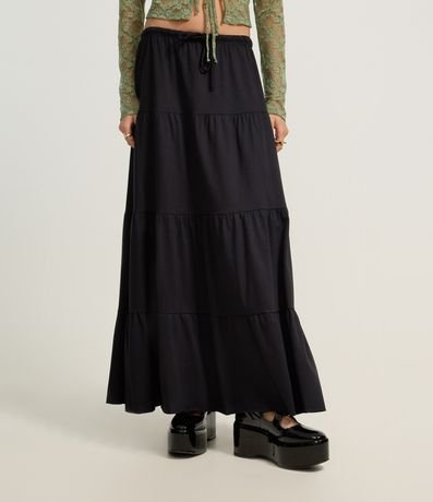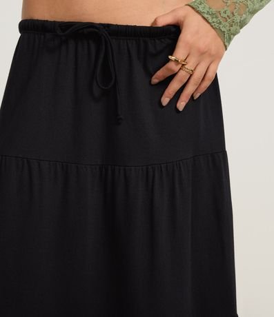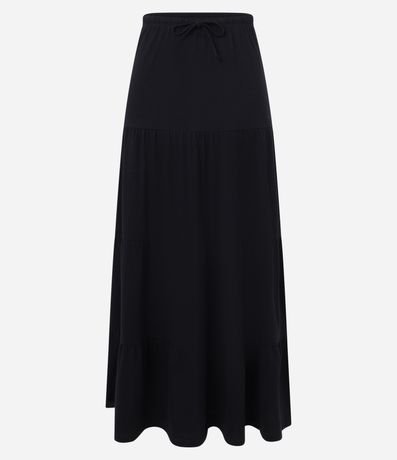Ref: Saia evasê com cós elástico, confeccionada em algodão bci mais sustentável e babado na barra.