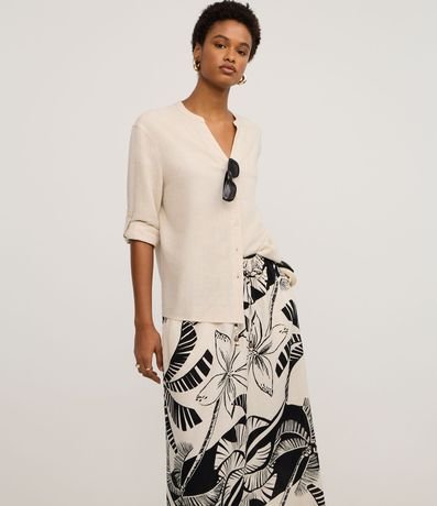 O viscolinho é uma mistura de linho e viscose. O material proporciona toque macio, caimento fluido e um visual sofisticado à peça. Além disso, traz conforto e leveza ao look, perfeito para os dias atuais.