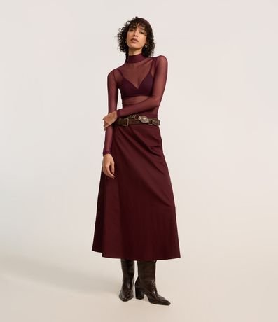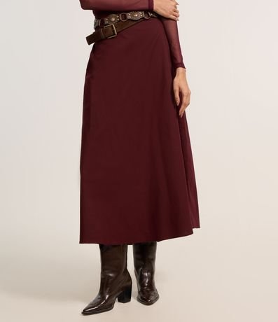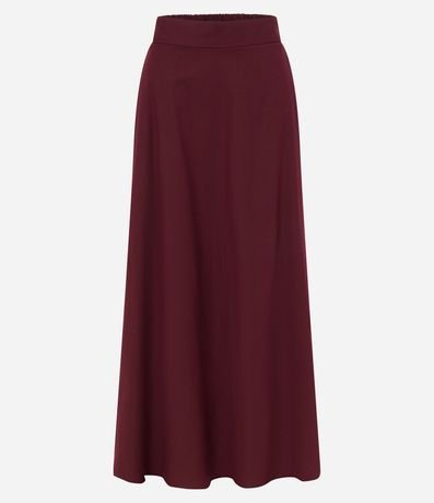 Saia long midi, evasê com cós elástico na parte de trás, pregas, confeccionada em algodão bci mais sustentável e produzida através de boas práticas ambientais.