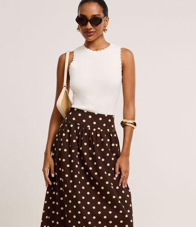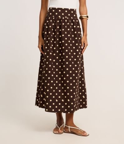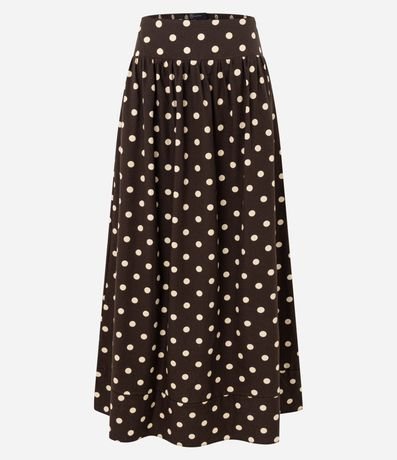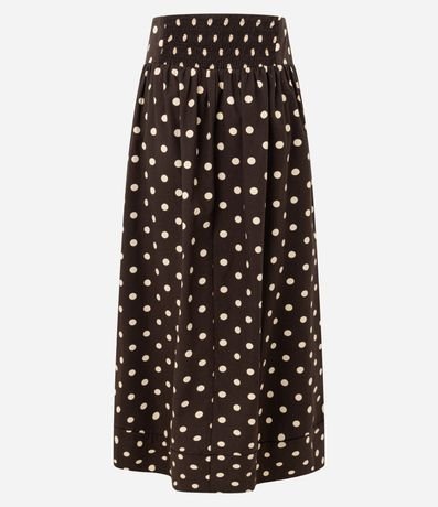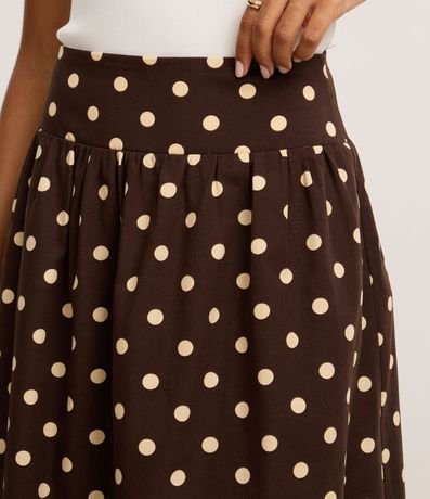 Ref: Saia evasê midi, confeccionado em cotton, com pala larga com lastex atrás do cós e estamparia de poás - bolinhas. Peça bicolor. Este produto possui algodão certificado em sua composição, sendo ambientalmente mais responsável.