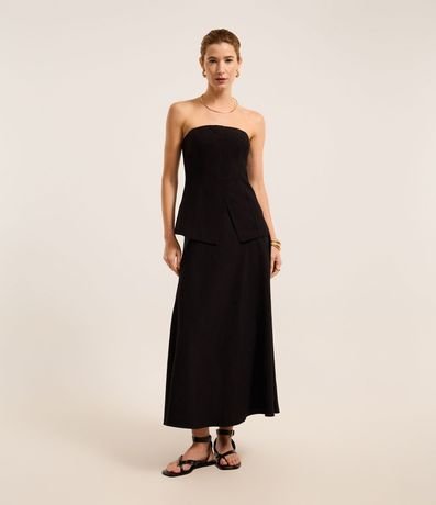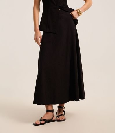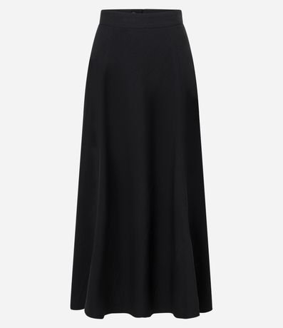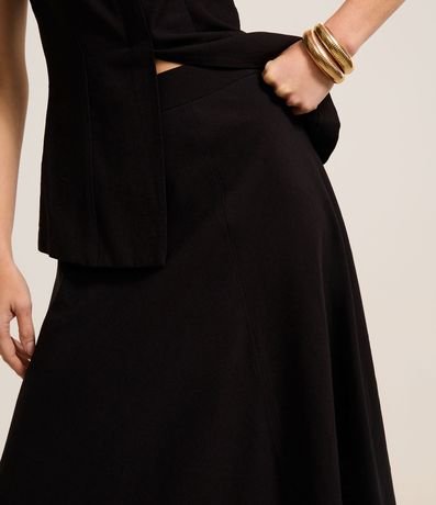 Ref: Saia evasê midi confeccionado em crepe de poliéster. Possui cós fixo.