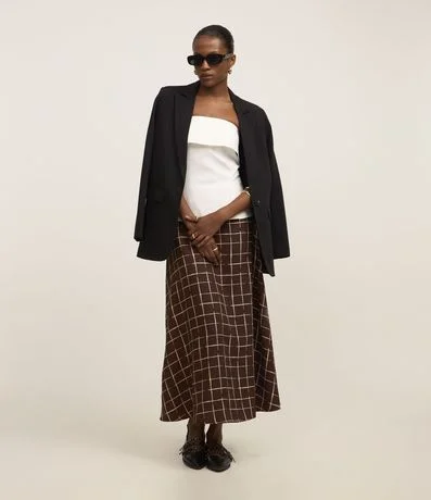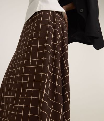 Saia Evasê Midi em Crepe com Estampa Xadrez