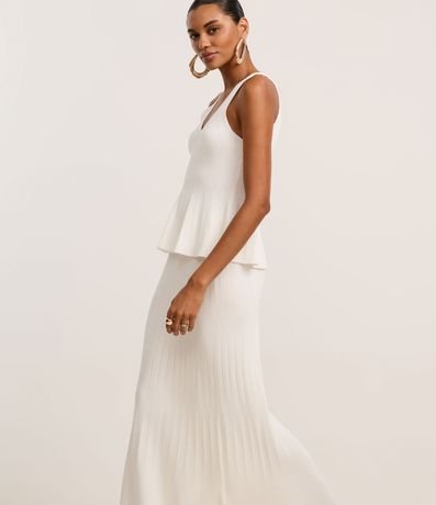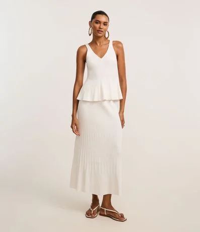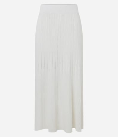 Ref: Saia evasê long midi, confeccionada em tricô, com elástico no cós. Este produto possui viscose certificada em sua composição, sendo ambientalmente mais responsável.