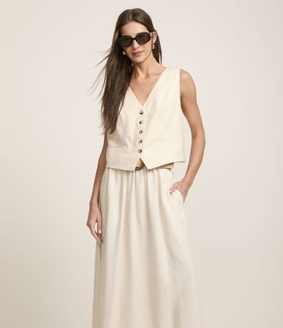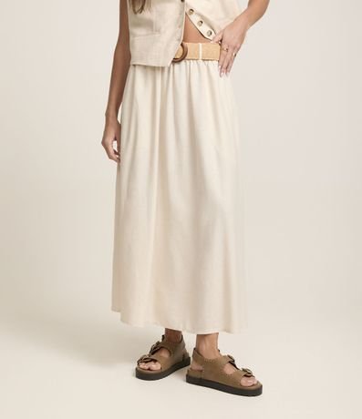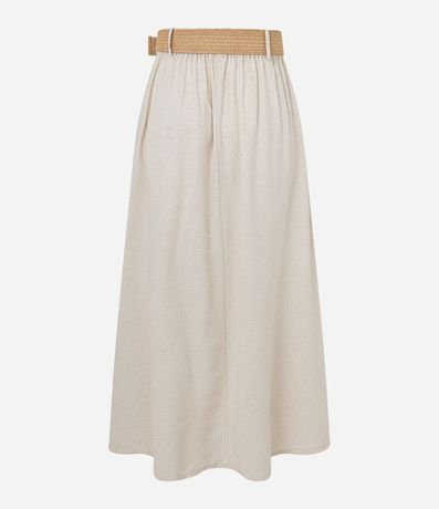 Saia Evasê Midi em Viscolinho com Cinto Fivela de Madeira