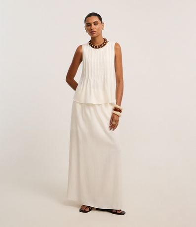 Ref: Saia evasê midi, confeccionada em viscolinho, com elástico atrás no cós. Este produto possui viscose certificada em sua composição, sendo ambientalmente mais responsável.