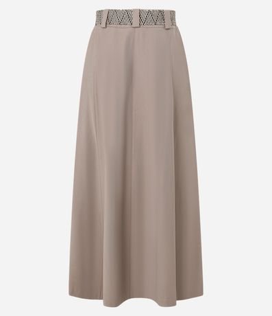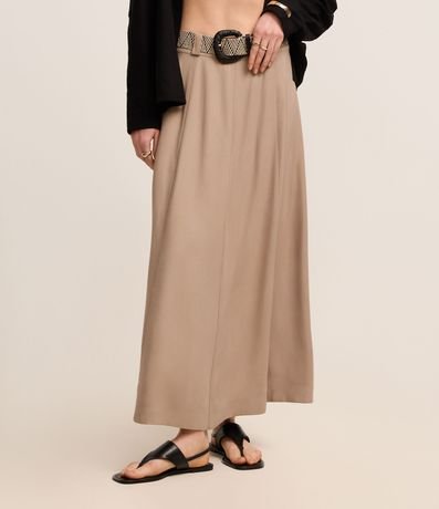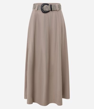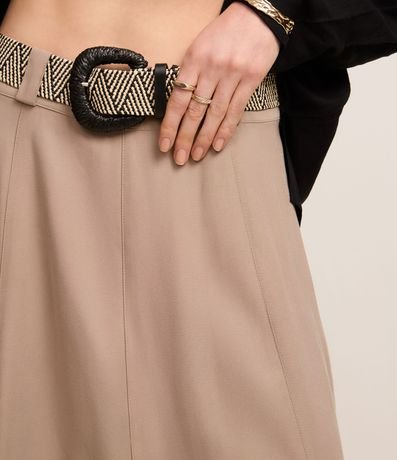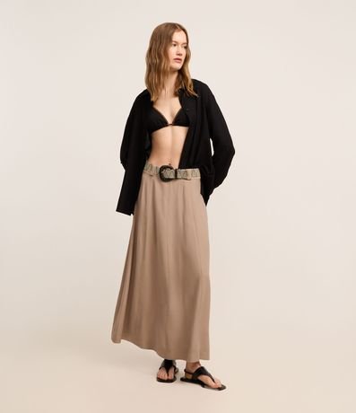 Ref: Saia evasê midi, confeccionada em viscose, com passantes no cós e recortes verticais. Inclui cinto de ráfia artificial com fivela diferenciada de tamanho e formato robustos. Este produto possui viscose certificada em sua composição, sendo ambientalmente mais responsável.