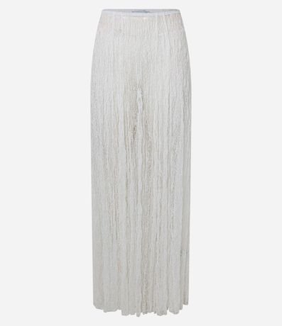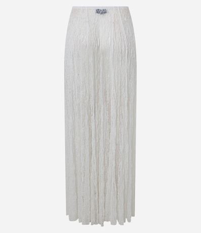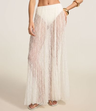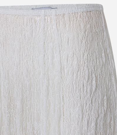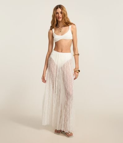 Ref: Saia feminina em renda no modelo evasê new midi, com cós fixo e textura, peça não contém forro podendo promover uma transparência.