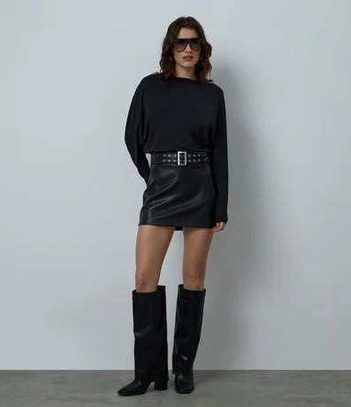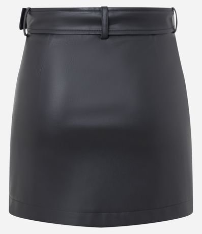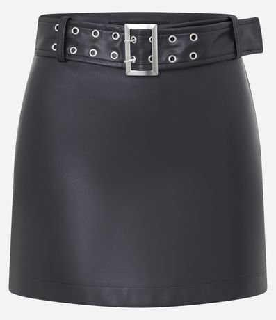 Ref: Saia feminina confeccionada em PU com acabamento liso e toque sofisticado, apresentando modelagem mini ajustada que valoriza a silhueta e cinto largo embutido com ilhós metálicos e fivela frontal, ideal para composições glamourosas que elevam o visual em festas, eventos noturnos e happy hours com atitude e estilo.