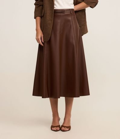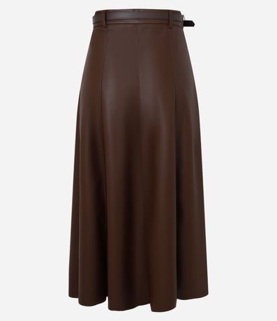 Saia Godê Midi em PU com Cinto Fino de Fivela Forrada