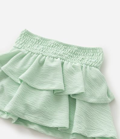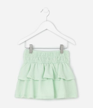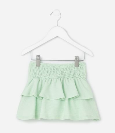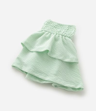 Ref: Saia infantil confeccionada em anarruga mais sustentável através de boas práticas ambientais. Possui cós com lastex, babados e texturizada.