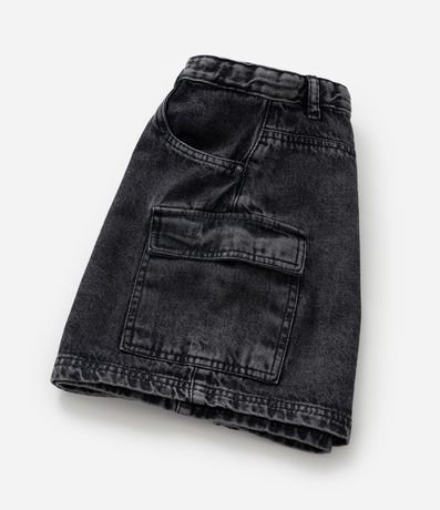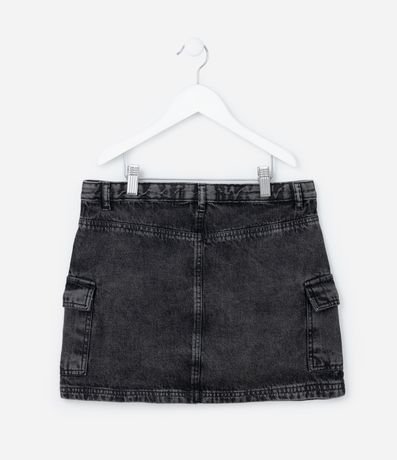Ref: Saia infantil confeccionada em jeans, com passantes no cós e bolsos cargo laterais.