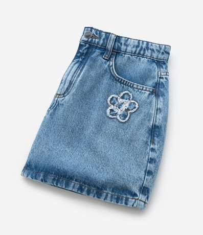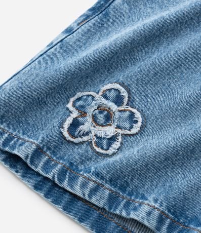 Saia Infantil em Jeans com Bordado de Flores - Tam 5 a 14 Anos