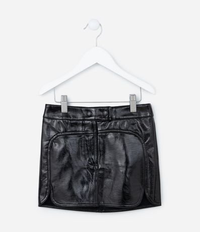 Ref: Saia infantil confeccionada em material sintético, com cós com botões, recortes e fendinhas laterais.