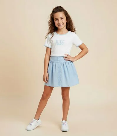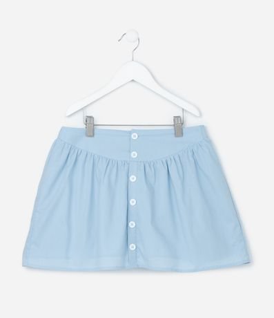 Ref: Saia infantil confeccionada em tricoline mais sustentável, com cós fixo, pregas e botões.