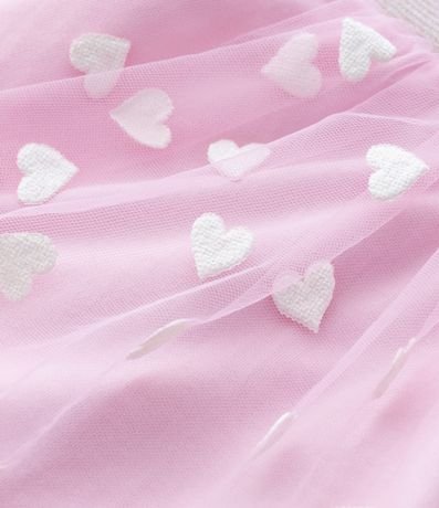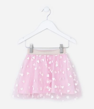 Ref: Saia infantil confeccionada em tule, com forro, cós elástico brilhante e estampa de corações.
