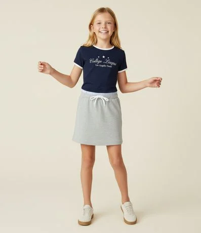 Ref: Saia infantil evasê confeccionada em algodão certificado BCI e boas práticas ambientais. Possui cós de tricoline listrado com elástico e cordão, bolsos frontais e superfície lisa em moletom sem felpa, garantindo conforto, praticidade e estilo leve.