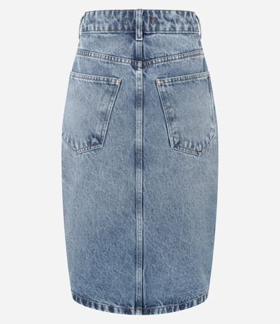 Ref: Saia jeans com modelagem reta e comprimento acima do joelho, cintura alta e bolsos five pockets. Possui fechamento tradicional e visual clássico, ideal para compor looks casuais com estilo. Peça versátil e confortável, confeccionado em algodão de certificado BCI.