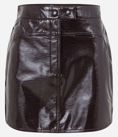 Saia Justa em Vinil com Botões e Abertura Lateral