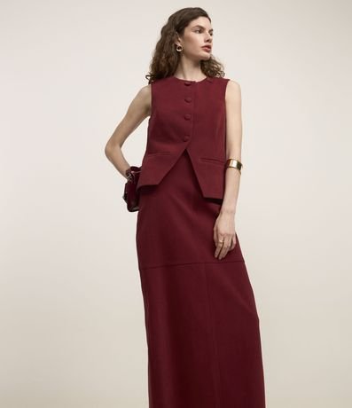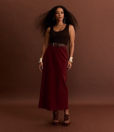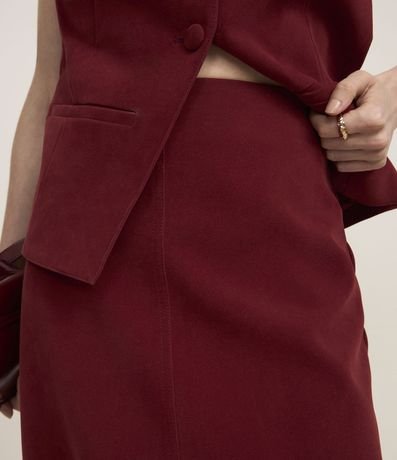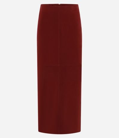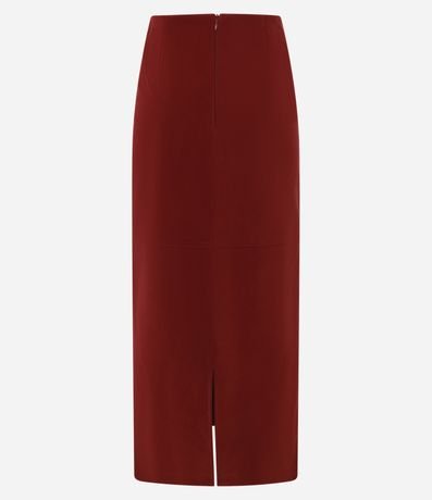 Ref: Saia lápis new midi confeccionada em material sintético com abertura traseira por zíper e fenda traseira central.