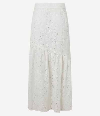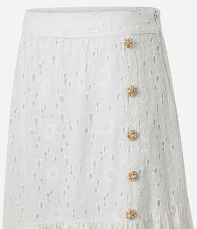 Saia Long Midi em Laise Floral com Pala e Botõezinhos