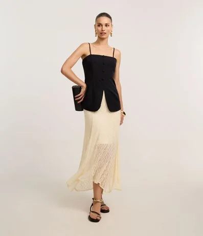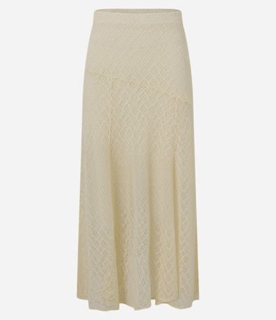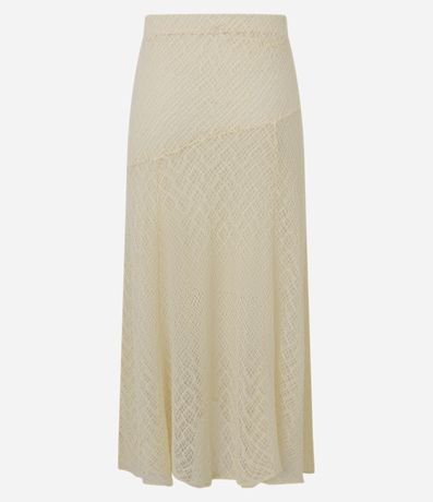 Ref: Saia longo midi, confeccionada em renda, com elástico no cós e pontos abertos.