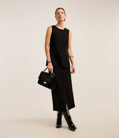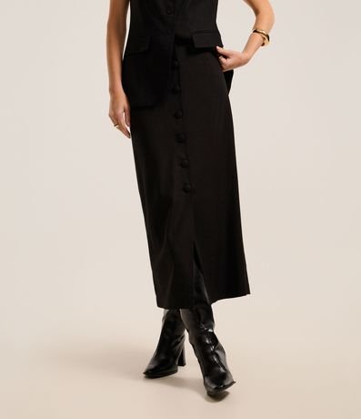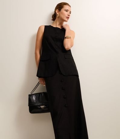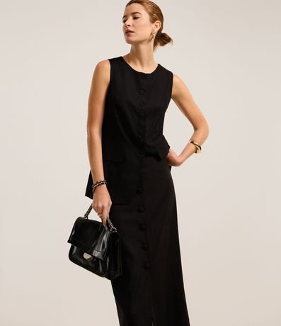 Ref: Saia reta de comprimento long midi, confeccionada em viscolinho com com 28% de linho, com abotoamento frontal forrado. Este produto possui viscose certificada em sua composição, além de ter sido produzido através de processos mais sustentáveis com boas práticas ambientais, sendo ambientalmente mais responsável.